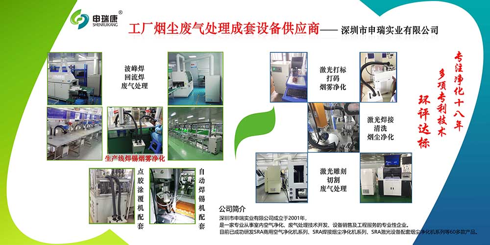 申瑞研發(fā)與生產(chǎn)的專業(yè)針對(duì)工業(yè)煙塵廢氣處理及成套設(shè)備,廣泛應(yīng)用于激光加工、波峰焊、回流焊、點(diǎn)膠等領(lǐng)域,凈化率達(dá)到99.99%,是您環(huán)評(píng)環(huán)保達(dá)標(biāo)的首選。