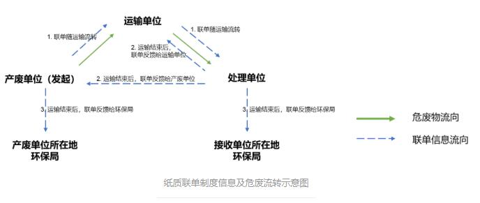 隨著我國工業(yè)化和城市經濟的高速發(fā)展,工業(yè)廢物、生活廢物以及醫(yī)療廢物的產生量急劇增加,其中對人體健康、土壤、水體等危害更大的危險廢物也大大增加,整個2018年的危廢產量達到7500萬噸,與2011年相比翻了一番。如果危險廢物處理不當,則會對環(huán)境以及人類造成巨大危害,甚至導致疾病和死亡。如何能更加有效、環(huán)保、徹底處理或穩(wěn)定化這些危險廢物,成為當今世界關注的重大問題。 在過去的一年里,生態(tài)環(huán)境部新增了包括固體廢物與化學品司,危險廢物也在固體廢物與化學品司管理范圍內。緊隨其后的是“清廢行動2018”轟轟烈烈拉開架勢,加強了對固廢以及危廢產生企業(yè)的監(jiān)管和督查,大量被查出來的固廢危廢將進入正規(guī)處置渠道。在長江經濟帶沿岸地區(qū),工信部也對工業(yè)固廢展開大排查。同時,新版《環(huán)境保護稅法》頒布,山東、四川、廣東等省危廢相關細則紛紛落地,對于違反相關法律的行為也都遵從“從重處罰”的原則。 目前傳統(tǒng)的對危險廢物轉移過程的監(jiān)管主要實行的是“紙質聯(lián)單制度”,即轉移過程中的關鍵信息和數(shù)據(jù)由參與方記錄在聯(lián)單上,最后寄給相關的政府環(huán)保部門進行監(jiān)管(如下圖所示)。此種制度存在流轉效率低,數(shù)據(jù)準確性不可控,聯(lián)單的保存與管理成本高等問題。
