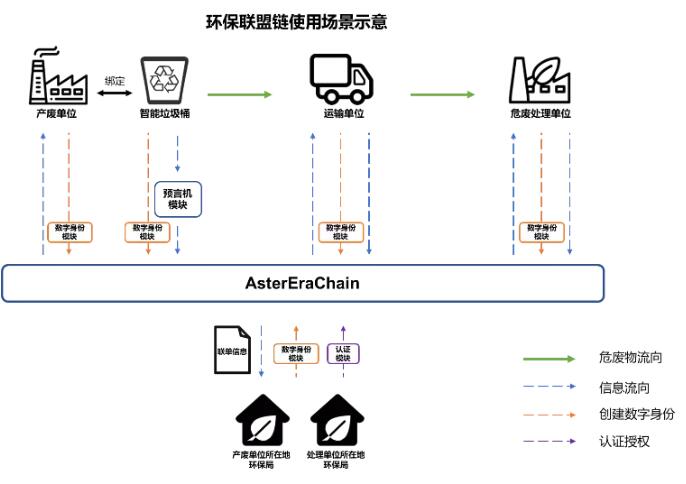 某公司與當?shù)卣奈U處理企業(yè)、環(huán)保部門合作,利用物聯(lián)網(wǎng)和區(qū)塊鏈技術,打造了一個工業(yè)級危險廢物轉移管理大數(shù)據(jù)平臺。使用此大數(shù)據(jù)平臺的企業(yè)會在產廢工廠放置智能危廢垃圾桶,垃圾桶會將收集到的危險廢物的重量等信息通過物聯(lián)網(wǎng)協(xié)議上傳到云端管理平臺,保證數(shù)據(jù)的即時準確,當垃圾桶中的廢物達到一定重量閾值后,平臺會調度相關的運輸公司的車輛去收集廢物,運輸?shù)较嚓P的處置單位。 在危廢轉移過程中,當智能垃圾桶中的危廢被傾倒出去時,垃圾桶會自動在區(qū)塊鏈上創(chuàng)建一個“區(qū)塊鏈聯(lián)單”,而產廢企業(yè)、運輸公司、處置單位接下來的每一次操作也都會通過APP上傳信息到區(qū)塊鏈聯(lián)單中,區(qū)塊鏈聯(lián)單自創(chuàng)建到完成的整個生命周期也都在相關政府環(huán)保部門的監(jiān)管之下,并且通過密碼學技術以及區(qū)塊鏈權限管理功能,有效的保護各企業(yè)的數(shù)據(jù)隱私性。同時,大數(shù)據(jù)管理平臺會對危廢轉移數(shù)據(jù)、聯(lián)單數(shù)據(jù)進行管理、分析和可視化,提供一個完整的從線下收集數(shù)據(jù)到云端管理數(shù)據(jù)的信息閉環(huán)。