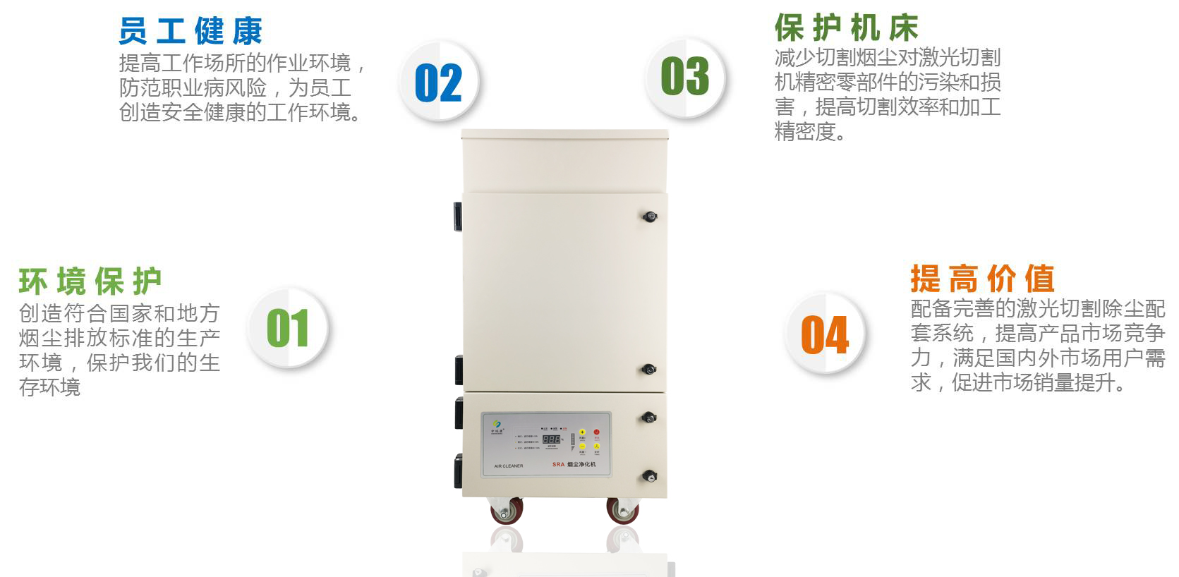 激光切割從業者如何防護激光煙塵? 要有效防護激光切割煙塵從而保障從業者的職業健康,要從以下幾方面入手: 1、 除塵系統 企業給激光切割設備安裝有效的除塵系統,申瑞激光煙塵凈化器,專業除煙除味,能達到室內排放標準,不僅能有效保證一個健康的工作環境,還能有效保護激光切割設備,延長使用壽命。 2、佩戴口罩 僅僅有除塵系統還是不夠的,因為除塵系統并不一定能將激光切割產生的煙塵完全除掉,有些煙塵還是可能會成為漏網之魚,逃逸到車間生產環境中。那么給操作車間人員配備口罩成為必要之舉,并且企業要制定規章制度,要求車間人員必須佩戴口罩。 3、車間通風 有效的車間通風也是職業健康防護的意向重要內容,使車間內保持良好的空氣質量。 4、個人防護意識 職業健康關系到每一個操作人員的健康和家庭幸福,因此每位員工要有個人防護意識,積極佩戴口罩,并配合企業做好激光切割設備除塵系統的運行。 |